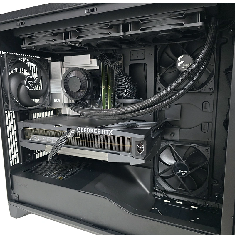 - Carcasa Fractal Design de inalta calitate cu airflow excelent pentru racirea interna cu ventilatoare silentioase. Avem 3 ventilatoare de 140mm in fata si unul in spate.